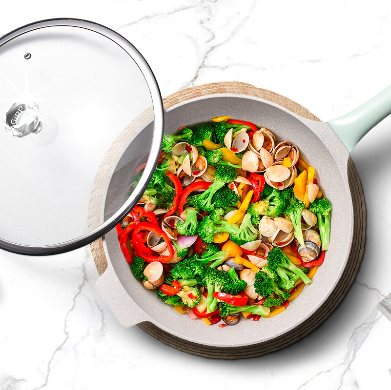 居派32cm 34cm火山石聚油不粘炒锅/玻璃盖可立 GLC3210EQ/GLC3410EQ